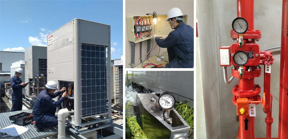 営業品目は電気・空調・防災に関して多岐にわたる設備を工事・修理・点検しています。